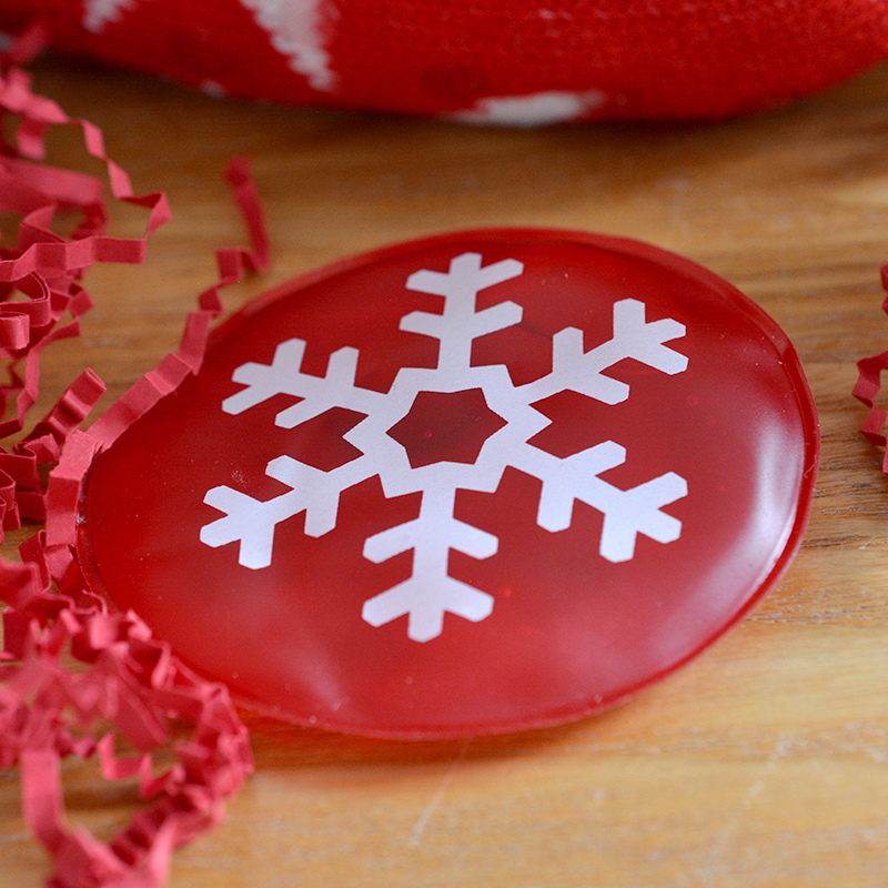 En forme de flocon et de couleur rouge, idéale pour réchauffer les mains pendant les journées glaciales.