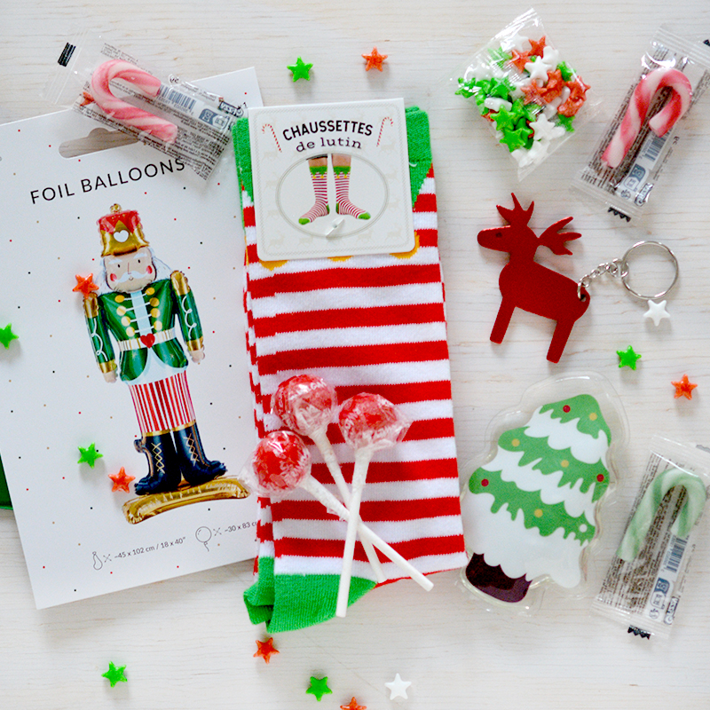 Chaussettes Rayées de Lutin (Rouge, Vert et Blanc) : Le must-have des fêtes ! Ces chaussettes rigolotes et confortables sont parfaites pour adopter le style du Père Noël ou de ses lutins farceurs.