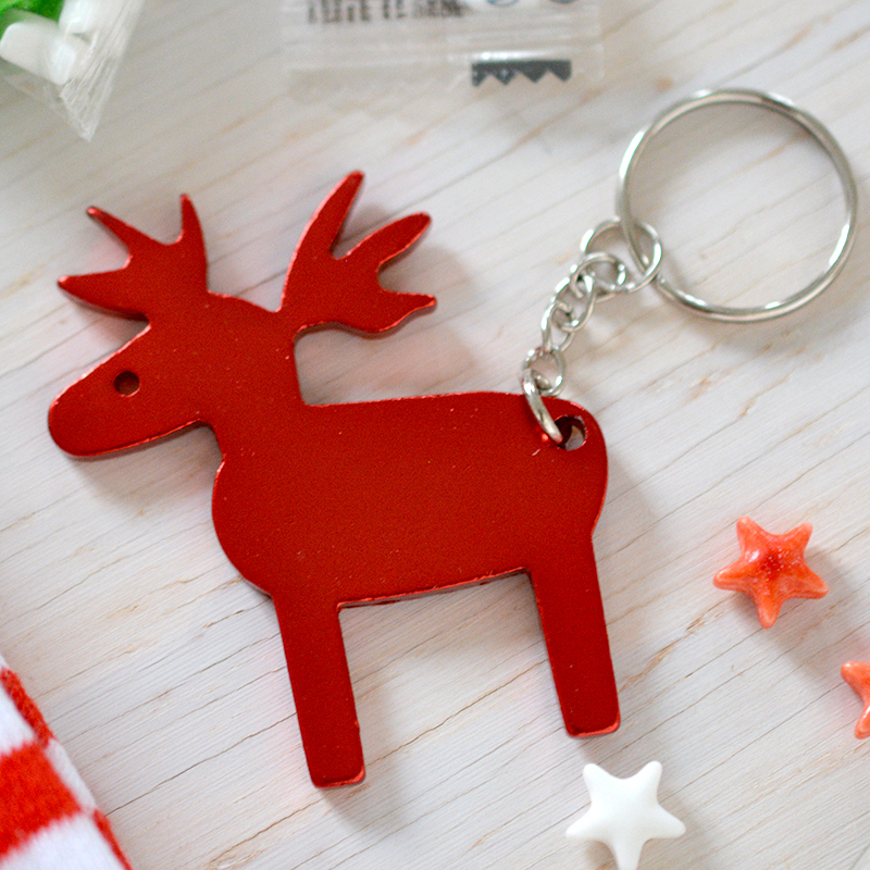 Porte-Clés Renne Rouge : Un porte-bonheur en métal rouge en forme de renne, à accrocher à ses clés ou à son sac. Un accessoire joyeux pour l'hiver !
