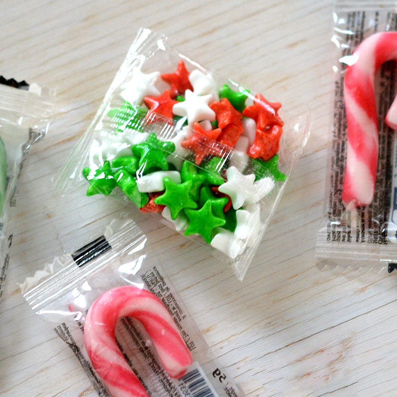 Mélange de Petits Bonbons Étoiles : De petites étoiles colorées (Rouge, Vert, Blanc) pour décorer un gâteau, un cupcake, ou à grignoter directement !